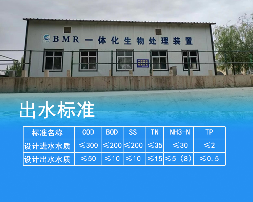 处理规模:100t/d,,采用工艺:BMR,,,,进水水质:生活污水,,,出水水质:国家一级A标准