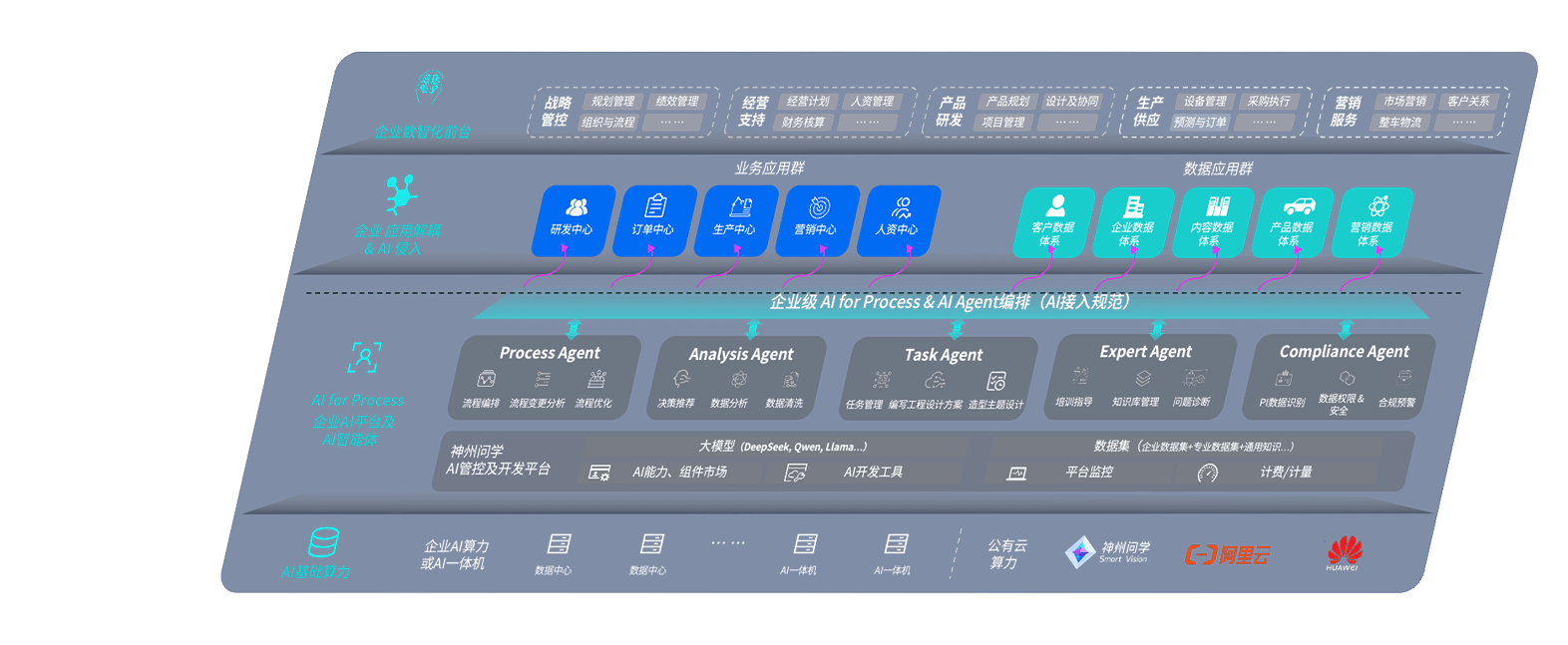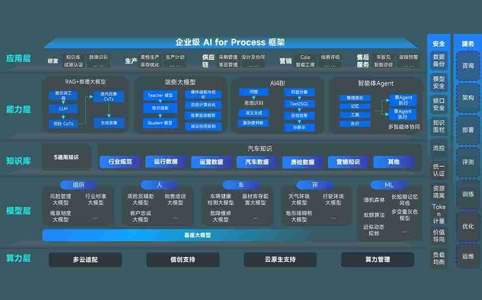端到端的一站式AI工作空间深度融合了从企业战略规划到日常经营的全流程业务板块,,,定向解决车企内部领域多、、、、部门多、、、、链条长、、场景碎片化等难题,,,,支持车企快速构建以AI为核心的生产力写作体系,,,实现任务执行与AI能力的无缝集成与交互